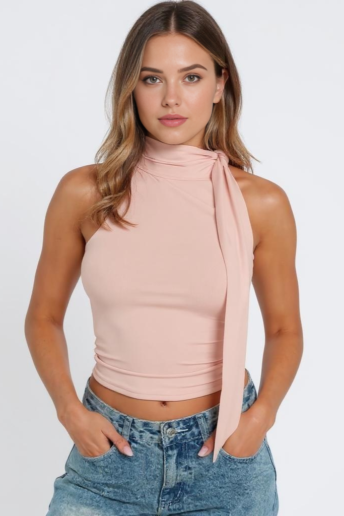 Skulpturel Top Med Bindebånd – en skarp silhuet med subtil elegance.